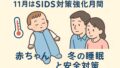 - ベビーカーの準備(オムツ/おしりふき/防臭袋/オムツ替えシート)